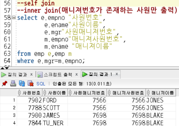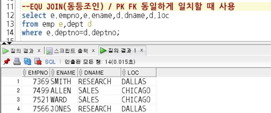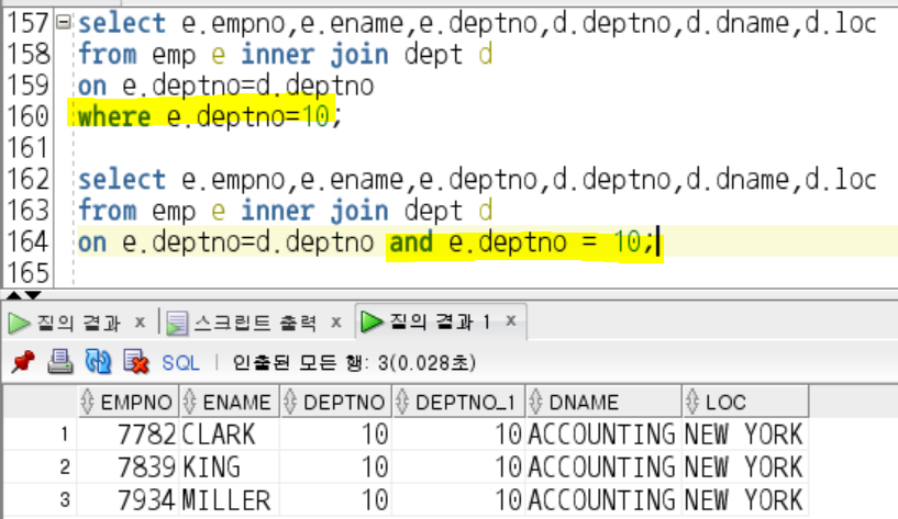 - where 조건을 조건 값을 주고 조인을 진행 함