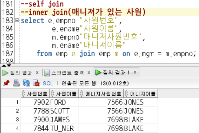 -> 특정 테이블 자신을 자신이 Join하는 방법