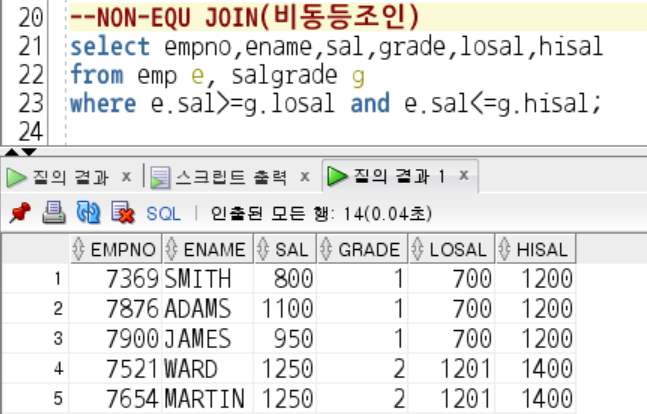 -> 정확하게 일치하는 경우가 아닌 조인 방식