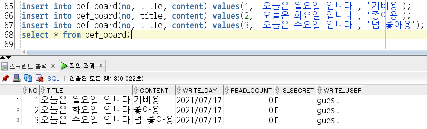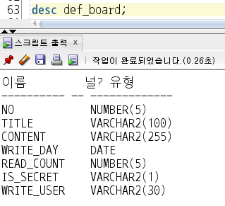 ㅁ def_board 테이블 생성 후 컬럼 명과 데이터타입 확인