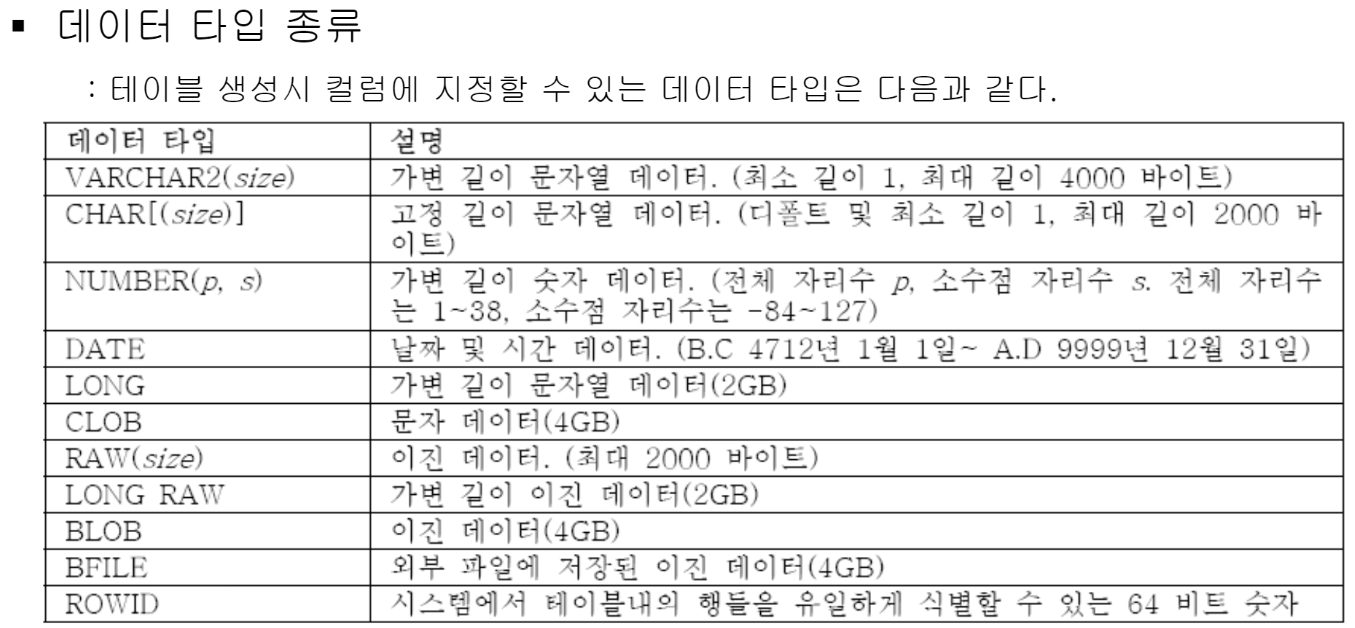 - EX) CREATE TABLE [schema.]table (column datatype [DEFAULT expr][....]);