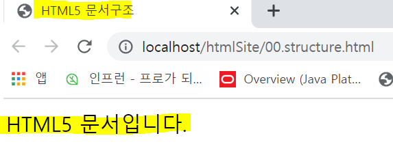 - <body>태그 내 기재한 "HTML5 문서입니다." 내용이 브라우저 내 삽입