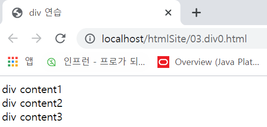 - <div>태그 내 기재한 내용이 웹 브라우저 페이지 내에서 1줄씩 삽입
