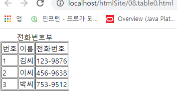 <caption>전화번호부</caption>