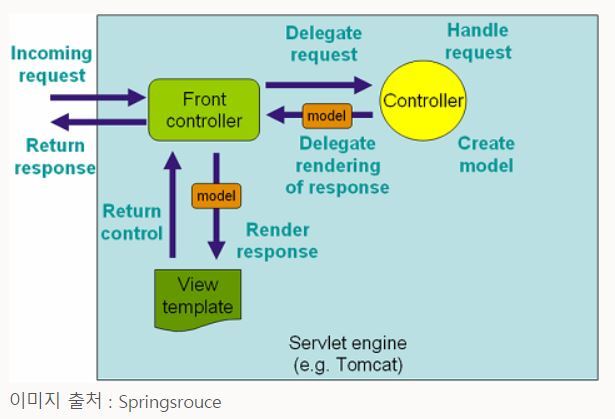 - 기존 모델 2와의 차이점: 전체 로직의 일부를 컨트롤러에게 위임하고